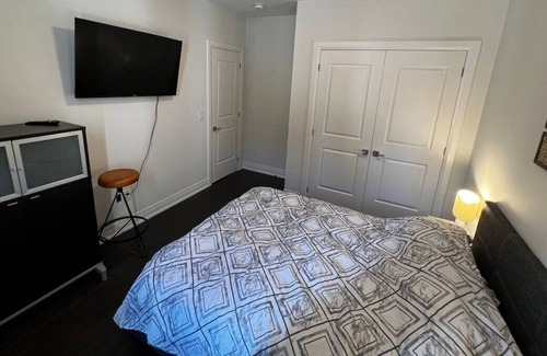 Experience luxury in this newly built upscale townhome in Newmarket with high ceilings and elegant bedrooms. Accommodates up to 10 guests with 4 parking spots, salt and shovels provided. Enjoy a private balcony, 3 smart TVs, fast 1500/MBPS fiber optic internet, 5 queen beds, and Netflix. Ideal for international guests, business trips, contracted teams, and family visits. Book your stay today for the perfect blend of comfort, style, and sophistication.