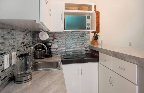 • Fully Equipped Kitchen: Everything from a stovetop and coffee maker to a spice rack ready for your culinary creations.