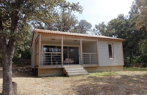 The bungalow, named "Cala di Sole," offers a partly roofed terrace, providing both shade and sun exposure options for your enjoyment. The terrace extends your living space, allowing you to relax, dine, or simply bask in the tranquil surroundings. With its practical and modern design, the bungalow is well-suited for a comfortable and convenient vacation stay.