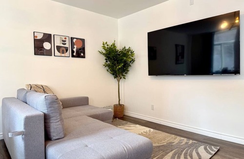 Prepare a home-cooked meal in the kitchen, complete with an oven, a stovetop, and a refrigerator, as well as a coffee maker, a microwave, and cookware. Connect to the WiFi, or get cozy in front of the TV. And you can even pack a bit lighter because there's a washer and dryer. Other amenities at this 2-bedroom, 1-bathroom rental include bed sheets, an ironing board, air conditioning, and heating.