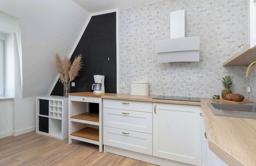 A cosy apartment on the 3rd floor, nestled in a peaceful, green part of Władysławowo, offers the perfect setting for a seaside getaway – ideal for families and groups of friends. The bright, inviting living room is thoughtfully decorated with natural tones, boho-inspired elements and unique accessories such as a Buddha figure, dried grasses and warm lighting – all creating a relaxing and harmonious atmosphere. At its centre is a comfortable fold-out sofa, a dining table and a large Smart TV with access to popular streaming platforms. Two separate bedrooms provide restful double beds and cosy nooks for relaxation – one also includes a desk, perfect for remote work. The spacious kitchen is fully equipped with a dishwasher, oven, induction hob, drip coffee maker and all necessary cookware – making it easy and enjoyable to prepare meals after a day at the beach. The modern bathroom features a walk-in shower, washing machine, hairdryer, towels and a complimentary set of toiletries that bring a touch of hotel comfort. The entire space is designed for everyday ease, so both morning routines and evening wind-downs become moments of comfort. Fast Wi-Fi and everyday essentials like an iron, ironing board, drying rack and baby crib are also available. Stylish, welcoming and full of character – this apartment will make you feel truly at home.