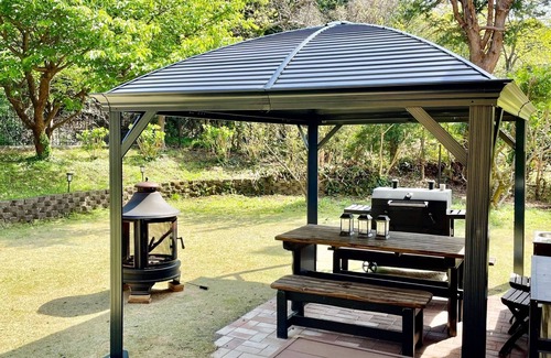 There is a gazebo in the lawn garden so you can enjoy BBQ even in strong sunlight or rainy weather