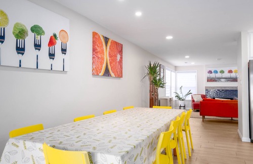 - Dining room table seats 12 people