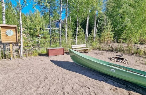 Travel cot (available at an additional cost) is suitable for children under 1 year of age. New high-class cabin by a fishy lake. Flat gravel yard, sanded beach above the waterline. Lake Vähä-Ilmetty is dark-watered lake with some humus. Some humus might be carried to the shore and that makes soft layer on the top of hard bottom.