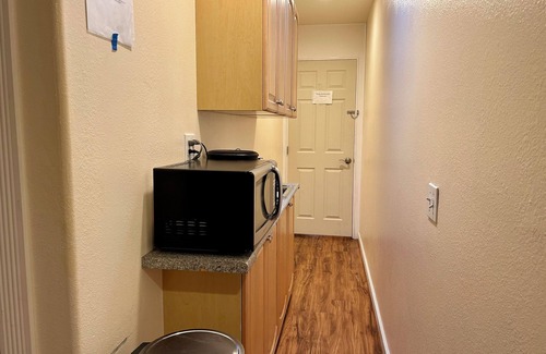 Private entrance and self check in. Attached to the main house. Microwave, coffee maker, refrigerator, toaster is available for quick meal inside the house.
