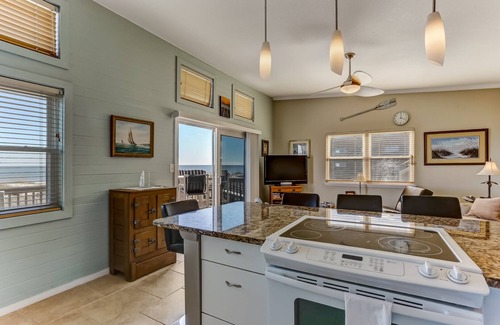 Cozy and comfortable, this second story condo, is full of light. Remodeled in 2012, it is beautifully decorated with new furniture and lovely paintings on the walls. And the panoramic view of the beach and ocean is just what the doctor ordered! One of only 4 condos in Seagate, there is plenty of privacy, as well as open space to the north and south, showing about 120 degrees of beautiful beach and ocean. It is just perfect for one happy couple.