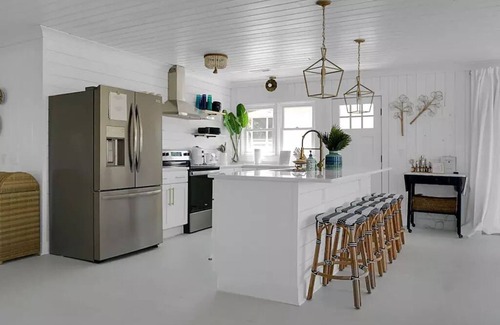 "This was very cute and decorated very well. Everything was clean and the beds were very comfortable. My two middle kids loved having the bunk bed room. There was a pack and play for the baby provided. Location was great you crossed road and turned right after a couple of houses and you’re at a public access.” - Jessica