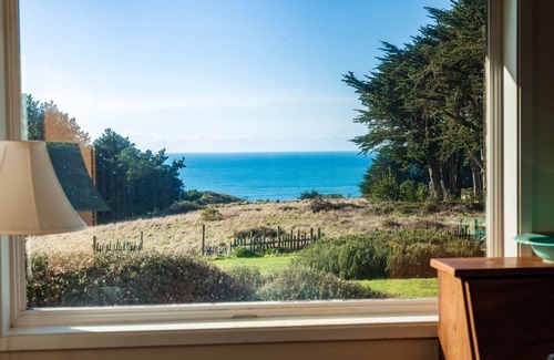 This spectacular, historic estate sits on 7.5 acres w/ a main house built in 1860. "The Fensalden", formerly a Wells Fargo stage coach stop, this grand main residence is graced w/ocean views from all west facing rooms, walkable land to explore & within walking distance to coastal trails. 6 of our bedroom here are ensuite (full bath in each room), each with their own exterior deck affording incredible privacy which few other properties can match. These 5 spacious & private retreats, 1 bedroom w/pull out queen couch and our 1 large "bunk room" sleep up to 20 guests. We also offer four well-appointed living areas spread out over the 5000 sq ft residence, each spot with its own unique character and designed so our guests can spread out enjoy a book while taking in the views, catch a movie on one of the two large TV's in this house or pull out the laptop to jump on our vibrant WIFI. The two large kitchens will easily support your group/family needs, along with multiple view dining areas.