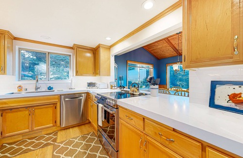 Take in the fantastic view at this perfect beach getaway located off Pacific Coast Highway, just 50 miles south of Mendocino. With a furnished back deck boasting a private hot tub and a gas grill, this home is ideal for your next vacation. Inside, you will have a full kitchen newly upgraded with top of the line kitchen appliances and Quartz countertops with a breakfast bar, a dining table, and excellent living spaces ! And on those occasional chilly nights, warm yourselves by the gas fireplace. Eternal Equinox also features a convenient Verizon wireless extender that improves phone service like you can't even imagine! Feel free to call back home and make sure everything is alright.