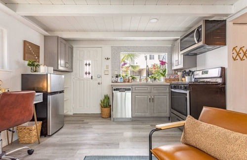Enjoy the soothing sound of ocean waves from your private outdoor space in this beautiful beach studio, available for monthly rent. Take a morning stroll along The Strand and dine at outdoor restaurants in Manhattan Beach. This home is just one block from LA’s best beach and walking distance to top restaurants and bars. Featuring a new kitchen and professionally designed interior.