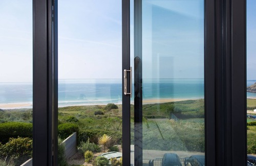 Wonderfully positioned above Praa Sands, this contemporary holiday home is less than two minutes' walk from one of Cornwall's best beaches and boasts sleek lines, a private garden and unobstructed ocean views; perfect for family holidays on the Cornish south coast.