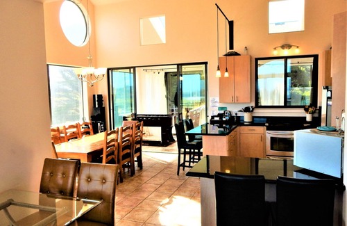 From the LARGE OPEN KITCHEN area you can VIEW the OCEAN with fishing boats, the BAY with kayaks and abalone-divers, and the BEACH with its surfers and paddle boarders; quite an entertaining panorama.