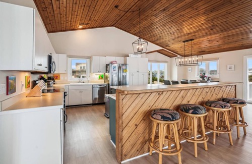 Step outside, and you'll discover an oasis of relaxation. The home features a spacious deck to enjoy stunning sunrises and the soothing sound of the nearby waves. The walkway right off the back deck is easy to access the recently re-nourished beach with lots of room to set up for your beach days!