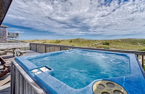 Step away from reality for a chance to see true beauty in its natural environment at Sunjammer, this home away from home in beautiful Waves! Come appreciate everything an Outer Banks vacation has to offer with this four-bedroom, two-and-a-half-bath home, complete with everything you need for time with your loved ones. Rest your laurels in the hot tub while you watch the sunrise over the ocean. Slip up to the top floor for some fantastic ocean views on the furnished sundeck while catching some rays, or curl up with a good book while watching the sunset over the sound. With a fully equipped kitchen complete with a breakfast bar and wet bar, entertain family and friends with a home-cooked meal and games in the spacious, tastefully decorated great room or cookout on the barbecue while eating on the two picnic tables provided. Other amenities include three TVs, two DVD players, and two stereo/CD players. Join us here at Sunjammer where every day new memories are made!