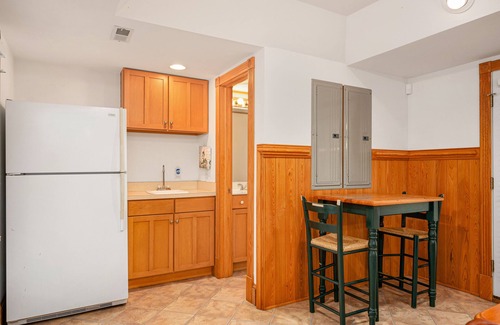 Ground Level: The ground level includes two bedrooms: one room with a King bed that shares a full bathroom with a room with both a DuoBunk and a Single bed. Both rooms have HDTV, Blu-Ray player and streaming Netflix. This level also features a well-equipped rec room that includes a pool table, foosball table, stereo and HDTV, Blu-Ray player and streaming Netflix. There is a wet bar and a full fridge in the rec room for keeping cold drinks to enjoy poolside. The rec room also includes a half bath only a quick step inside from the pool deck. The private pool and cabana hot tub are just outside the rec room through the newly-installed safety fence. The house features quality outdoor furniture and the wooded lot provides privacy in the back of the house. The open side yard is set up for horseshoes and basketball.