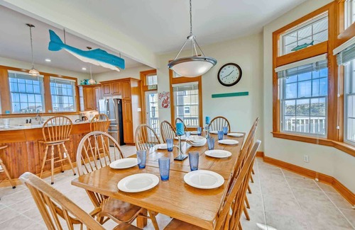 OCEANVIEW Avon - Ocean Isle Loop - Spend your vacation with MISS CAPE MAY. This elite home in Ocean Isle Estates offers all the upscale amenities, furnishings and little touches to awaken your family's fond memories of vacations on the shore. Enjoy a leisurely walk to the ocean or spend some time with the family by the sparkling private pool. Nearby there's a convenient outdoor cabana bath by the outside shower on the adjacent covered porch with relaxing hot tub. Step inside and remain entertained in the game room with the pool table, TV/Blu-ray player and full size refrigerator in the laundry room. There is a bedroom with queen bed and semi-private bathroom, a bedroom with two sets of bunks and a queen master bedroom on this level as well. Climb upstairs and you'll find the airy great room conveniently on the mid-level of the home. The well-equipped kitchen is sure to delight any chef with granite countertops, stainless steel appliances, top of the line cookware, and ample elbow room to prepare the most wonderful gourmet meals. The gracious dining area makes every meal a banquet and the living area is the ideal place to stretch out after a long day at the beach in front of the BOSE home theater system with flat screen HDTV. Also on this level is a convenient half bath and a queen master suite with tiled shower, soothing Jacuzzi tub, sitting room and walk-in closet. Drift up to the top level and you'll find a king master bedroom and a queen master bedroom, each with a private deck to enjoy a peaceful island breeze. All bedrooms come equipped with iPhone lightning chargers and clock radios. With a tranquil setting combined with modern amenities, MISS CAPE MAY welcomes you with the best the Cape has to offer.