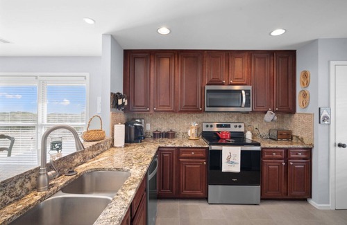 Inside, discover a well-furnished and expansive living space featuring 4 bedrooms and 3 bathrooms, providing ample room for families or groups. The open floor plan and comfortable living areas ensure everyone can gather for quality time, while also offering private spaces for relaxation and repose.