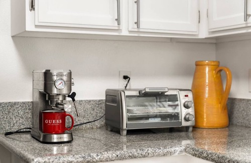 The spacious living area is perfect for relaxing or hanging with your group, with ample seating and space. The fully equipped kitchen boasts high-end appliances and everything you need to prepare a gourmet meal. Each bedroom is a haven of tranquility, featuring plush bedding and thoughtful touches to ensure a restful night’s sleep. The two bathrooms are equipped with Shampoo and Body wash.