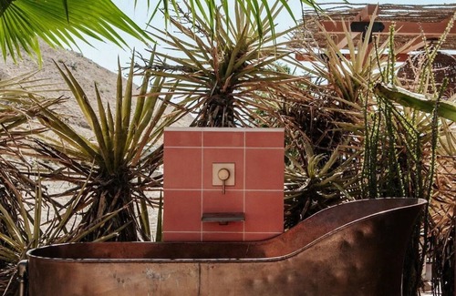 Thoughtfully styled, every part in this private oasis is special - with a a chef's kitchen, 3 bedrooms outfitted with Coyuchi bedding & Avocado Mattresses, an outdoor bathtub for relaxing under the stars, a stock tank swimming pool, bocce court, & meditation labirynth.