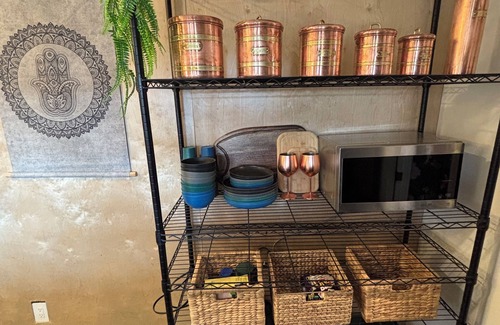 Get out of the city and enjoy the peace and quiet of nature when you stay in this unique place. Local Deer and fox roaming the area if you are lucky to see them. Wake up to a gorgeous mountain/valley view , BBQ during the day and enjoy smore's with the firepit at night. Miles of hiking right off the property and in the surrounding areas. Lots of local dirt bike, side by side riders in the area as well, and horse back riding! If your a plant enthusiast like me, you will have fun scoping out all the natural medicinal herbs naturally growing in the area, i.e. sage, mullein, brigham tea, and many more! Enjoybeing hidden in the valley and a couple neighbors in the area. This is an outdoor off grid Glamping experience! Bring items you would normally bring camping (DRY CAMPING), but you have the luxury of having shelter, bed, sofa bed, refrigerator/ freezer, propane grill, propane stove, well water provided, and ability to have camp fire as the container is located on private land not Forest land. Wifi is provided complimentary and as a luxury. Wifi is supported by Starlink and works about 85% of the time due to its remote location and weather conditions. RENTAL AMENITIES Propane grill Bed linen Carbon monoxide detector Coffee machine Cooking utensils First aid kit Internet wireless (85%) Mountain Parking Parking on street Pets allowed Private porch Refrigerator Security system Portable Shower Smoke detector Smoking allowed outside Suitable for events Disclaimer: Please do not follow any maps/ or GPS coordinates given by the rental/booking site. THERE IS NO ADDRESS. Please only use instructions provided to you by the host so that you do not get lost. 4-wheel drive highly recommended as it is off-road/ off-grid driving... You will be required to drive a vehicle with at least a 5 inch clearance above the ground so that you may be able to drive over the rocks without damaging your vehicle. The off road portion (the last 4.5 miles) ride is very bumpy, off road- means no pavement/ no gravel. You are off-roading in the mountains friends! Please keep in mind that there is no refund or cancellation policy if you decide to opt out of using a 4WD or vehicle that does not have the 5inch clearance.