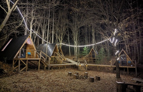 Make this brand-new cabin your home away from home while adventuring in Hartford, TN. Halls Top Hangout features 5 mini cabins equipped with queen beds, camping essentials, and so much more. We offer a genuine outdoor experience for those looking to escape the everyday. Nestled amidst nature, our off-grid, unplugged A-frame cabins provide the perfect base for adventure & relaxation. Located between the GSM and the Cherokee NF, adventure is all around. We are only 5 miles from white-water rafting, ziplining, and so much more!