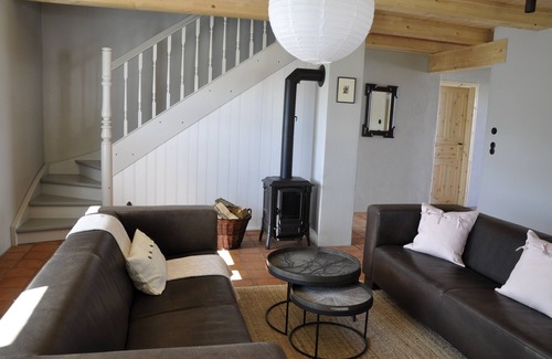 The Käptn's Half is a holiday home half with 3 bedrooms in the pipe roof house "Alter Katen Glowe". Just 200 meters from the cliff edge and 1,000 meters from the beautiful sandy beach of the Schaabe. The house is newly built but romantic as in the time of Uroma, without sacrificing modern living comfort. Many details outside and inside according to old models. Wooden beamed ceiling, clay tiles, solid wood flooring, bakelite switch, sauna, fireplace and country house kitchen in the house for a cosiness and atmosphere. Breakfast is served in the conservatory with practical sliding windows. Underfloor heating, modern kitchen appliances, washing machine, Wi-Fi and magenta TV provide modern conveniences. Special consideration was given to families with children. There is a child safety gate on the stairs, the sockets have child safety and there is a Tripp-Trapp and a cot available.