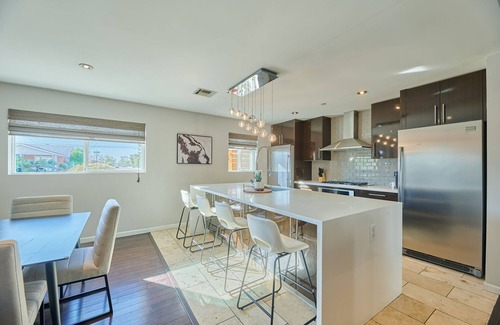 Our home has brand new modern furnishings and decor hand picked with an eye to detail by the Host. Large open living room that blends nicely into an open dining room and kitchen. The kitchen is extremally spacious with separate fridge and freezers, allowing for extra room. There is a dedicated bar with a beverage fridge for even more room to make your favorite drink.