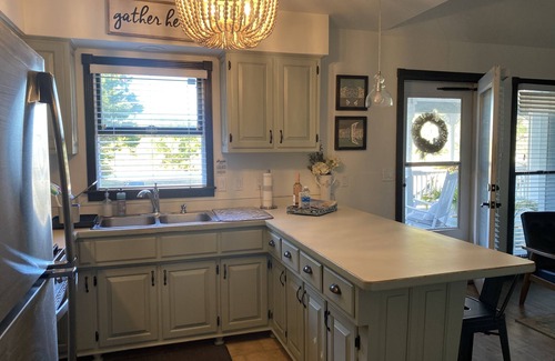 The full-sized kitchen is equipped with a fridge, microwave, gas stove and oven, Keurig & Mr Coffee makers supplied with ground coffee and pods, tea kettle, high speed blender for smoothies or margaritas, dishes, drinking and wine glasses, silverware, pots, and pans. Sheets, towels, beach towels, and basic essentials (toilet paper, paper towels, cleaning supplies, trash bags etc.) are provided.