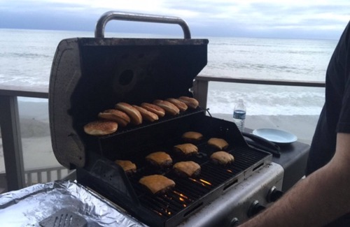 Ocean front. No Sunday checkouts and no pets. The house is built on the beach, and has 8 bedrooms and 5 baths in a duplex style three story house. Licensed for twenty guests and seven cars. Sleeping for sixteen with a max of four additional guests. No parties with more than 20 people. The House can be split into the sand level rental (3 bdrs, 2ba) and the Upper Two Floors rental (5bdr, 3 ba). Wake up to the water. The sound of the waves at night, and the views are unforgettable. The house is well appointed, but it’s a beach house and it’s not super luxurious.