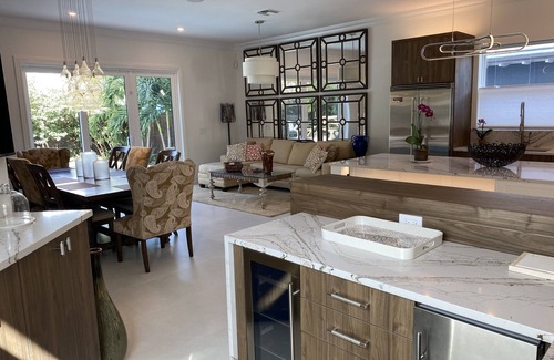 If you have any questions regarding my home, please contact me in advance of booking. You should only have to bring your clothes... Three new full bathrooms w European fixtures. Huge Master Suite w balcony w ocean views. 4 bedrooms, huge great room w 75”TV w Bose Surround. There are FIVE TV’s in total. Listen to your favorite music throughout the house and pool area by connecting to Bluetooth... Free HIGHSPEED wifi & Netflix. Free calls on house phone. Gourmet Kitchen fully stocked w utensils and electrics. Outdoor gas grill. Indoor Dining Table for 8; pool area dining table for 10; front garden dining for 4. Private rear yard w FREE HEATED Pool. Front garden w ocean views. Designer High End finishes, European lighting and fans... Designer Furniture & Accessories...