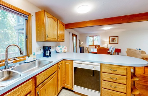 Memories full of love and togetherness will effortlessly be created in the sun-filled living room, the well-equipped kitchen, and the home's expansive deck. When the chef of your family is ready to show off their culinary skills, gather around the formal dining table. After eating, engage in some playful competition as you play corn hole or learn a new card game. The home's four bedrooms are equally comfortable with their coastal-inspired color palettes, warm wood finishes, and soft linens. Additional perks include a fireplace, a private washer/dryer, a gas grill, and central air-conditioning.