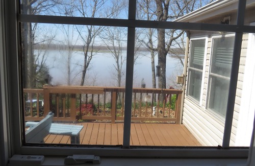 Our home has a private dock to fish from. Our new dock has two slips and a deck to enjoy fishing or swimming in the lake. It has lights, power, WiFi, and fans! In the fall and winter, the water is lower; but sitting on the dock can still be enjoyable. In the spring and summer, it is fun to fish from the dock or take your boat out on the river!