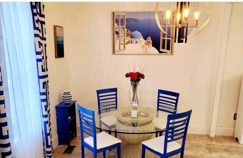 Just after our marriage the pandemic hit and we spent our days dreaming of a honeymoon in Greece and passed our time decorating. We managed to capture the coveted vacation vibes of the Mediterranean and stun our senses. We invite you to stay at our place, so you don't have to go far. No matter what your reason for travel is, just come and relax here for a while. Don't expect complete perfection because we're always refining and perfecting this space. Just enjoy the many modern comforts and the timeless charm of this beautiful house.