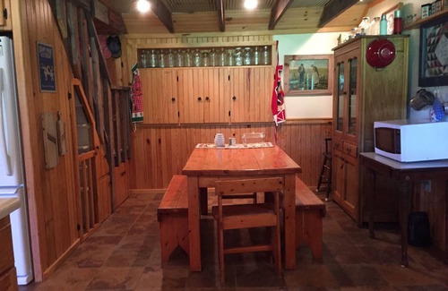 The kitchen is equipped with gas range, full size refrigerator, microwave, toaster, coffee maker and coffee (French press or drip), blender, plenty of cooking utensils and dishes. The country harvest table is a welcoming place to gather for meals as well as a variety of board games provided for your enjoyment.