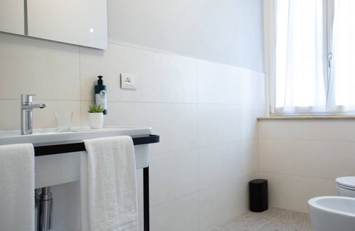 Residenza Perla, located on the third floor of Palazzo Indaco, features an elegant living area with a fully equipped kitchen, complete with modern appliances, tableware, and utensils. It is distinguished by its clean, functional, and timeless aesthetic, making it the perfect choice for those who appreciate luxurious style and seek maximum comfort in a pleasant and welcoming environment.