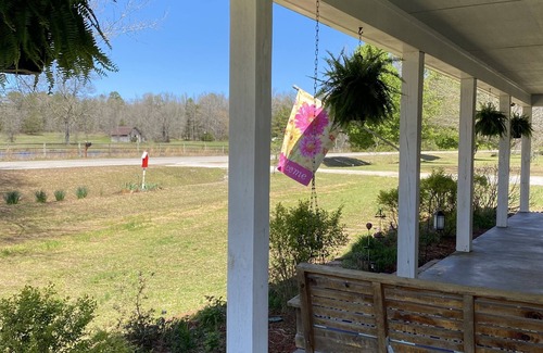 Our home features a wrap around porch that you will love for sitting, visiting, cooking out, and enjoying the view. It’s 7.5 miles from Oxford and 11 miles to the Ole Miss campus. It’s not a bad drive at all. We would love for you to stay in our home while visiting Oxford.