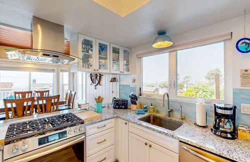 The newly remodeled kitchen has stainless steel appliances, a five-burner gas range/oven, a refrigerator with filtered water and an ice maker, a wide selection of knives and cookware, and both a Keurig and a drip coffee maker with a starter supply of coffee and tea. A variety of spices, oils, and vinegar are provided to assist you with preparing vacation meals. Enjoy meals at the dining table together. If you prefer dining alfresco, two outdoor dining sets, Adirondack chairs, and a large propane gas grill await on the balconies and patios. Beach towels, beach chairs, and insulated coolers are provided for your field trips.