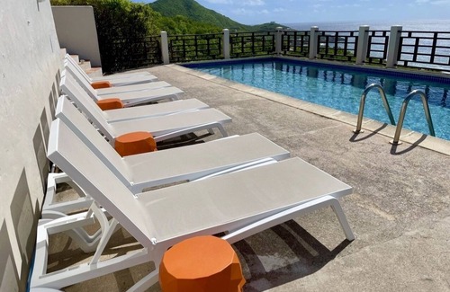 Welcome to the Crucian Hacienda, your retreat in paradise. Under new ownership by an award-winning interior and furniture designer couple, this stunning property has been newly remodeled and refreshed with every ammenity you will find at a boutique hotel. Take in panoramic views of the Caribbean while swimming in the pool, lounging on the terrace or dining al fresco on the veranda. Inside, you’ll find a spacious living room that opens onto the terrace and a fully equipped kitchen for all your culinary needs. Each of the four comfortably furnished boutique-hotel quality suites has a king size bed, air conditioning and en suite bathroom. We can also accomodate extra sleeping spaces on two large Living Room sofas - each approximately the size of a twin bed.