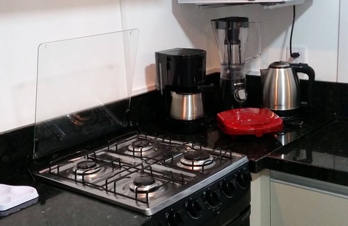 Household appliances: Coffee maker, toaster, electric kettle, blender, microwave, hair dryer, iron and washing machine.
