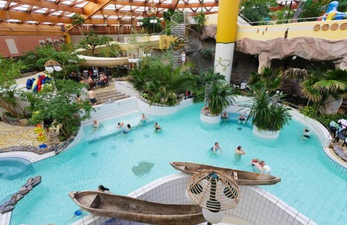 Child friendly resort "Park Nordseeküste". Outside the resort, 1 km from the centre of Tossens, from the sea, 350 m from the beach. For shared use: indoor pool heated. Children's playground. In the complex: reception, restaurant, bar, breakfast room, sauna (extra). Steam room (extra). Billiard table, shopping facilities, laundry (extra). Available: bowling (extra). Bread roll service possible (extra). Central parking spaces. Shop 600 m, supermarket, bakery 600 m, bicycle rental 100 m, railway station "Nordenham" 25 km, sandy beach "Nordsee-Lagune Butjadingen" 12 km, grass beach 350 m. Riding stable 3 km. Please note: entertainment. The owner does not accept any youth groups. Loading and unloading of baggage is possible at the holiday house. The photograph shows a typical example. All houses/apartments are individually designed/furnished. The covered "Market Dome" with restaurants, a café, a disco, a games room and a 24-hour shop is the atmospheric center of the resort. The covered subtropical water paradise "Aqua Mundo" (free of charge) offers 4,000 m² of indoor and outdoor pools, six slides and a sauna area (extra charge) on four levels. A sports hall (tennis, table tennis, squash and badminton), a soccer field, mini golf and mudflat hiking round out the extensive leisure offerings. Some facilities are available at an additional cost. Long-term stays (more than 21 days) and corporate bookings are only possible upon request.
