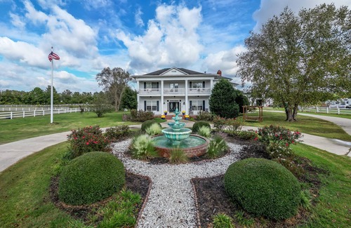 The Parkton Place is a wedding/event venue with a blank canvas located near Fayetteville, NC at a privately owned 5,000-sqr-ft home on a 30 acre equestrian estate w/ horses, donkeys, pigs, llamas, & dogs. The grassy lawns, large water feature, rustic barn, & spacious terrace offer many photo opportunities. Receptions can be held under rented tents. Owners open their private home for extended weekends in the home’s 6+bedrooms, gourmet kitchen & contains well-appointed get-ready suites.