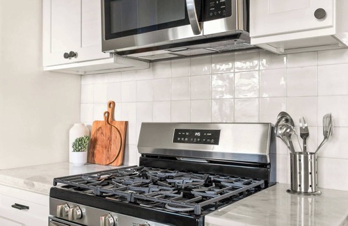 Inside, you'll find a cozy living room featuring a comfortable couch that doubles as a sleeper sofa, offering additional sleeping options for guests. Unwind after a day at the beach by watching your favorite shows on the flat-screen TV. Adjacent to the living area is a dining space with seating for four, perfect for enjoying meals together. The fully equipped kitchen has everything you need to prepare home-cooked meals, from quality appliances to all the essential cookware. Whether you're brewing your morning coffee or whipping up a simple dinner, this kitchen has you covered. The spacious bedroom boasts a sumptuous king-sized bed and its own flat-screen TV, providing a private haven for relaxation. An ensuite bathroom adds a touch of convenience and privacy to your stay. Step outside to discover your own private, gated backyard—a lush, green oasis perfect for soaking up the California sunshine. The grassy area is ideal for pets or for kids to play. As evening falls, enjoy alfresco dining for four under the charming market lights, and fire up the BBQ for a delightful outdoor cooking experience. Additional amenities include two mini split A/C systems to keep you cool during warm days, in-unit washer and dryer for your convenience, and one driveway parking space. Plus, this home is pet-friendly, so you can bring along your furry friends to share in the fun. Experience the best of Pacific Beach living in this delightful home that combines comfort, convenience, and coastal charm. Book your stay today and make unforgettable memories by the sea!