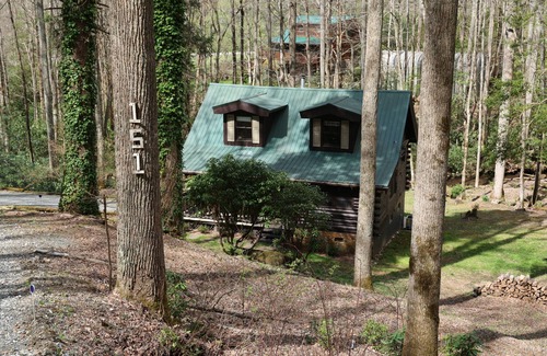 Leave your cares behind and discover this charming and comfortable 2-bedroom gem located on lovely Junaluska Creek near beautiful Nantahala Lake. Sit back and breathe the clean mountain air at 3200' elevation surrounded by forest and wild rhodendron. Walk the stepping stone path to dip your feet in the cool, rushing water of the creek. This rustic log cabin has all the modern comforts and features a master bedroom with king bed and private full bath. Kids will love the open loft containing 1 queen bed, 1 full bed, and 1 twin bed with its own full bath. Both bathrooms are equipped with a tub/shower combo, hair dryer, and toiletries. The full kitchen has updated granite counters and contains everything you need to stay in for home-cooked meals. Enjoy the convenience of amenities like WiFi, central heat and air, dishwasher, 3 big screen tvs and a washer and dryer. Relax in rockers on the front porch or grill out on the deck overlooking the creek. Let your stress melt away in the brand new hot tub (added August 2025). Children will enjoy roasting marshmallows at the fire pit or playing ping pong or corn hole in the back yard. With over 2 acres and 300 feet of creek frontage, there is plenty of room to explore and search for the numerous varieties of woodland wild flowers and plants. On cool mountain nights you'll enjoy the warmth of a fire in the wood stove. If the weather doesn't cooperate, you can stay inside and curl up with a book in front of the huge windows overlooking the yard and creek or have family bonding with the card and board games we offer.