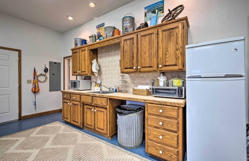 KITCHENETTE: Well-equipped, full-sized refrigerator, microwave, toaster, coffee maker, coffee grinder, Crock-Pot