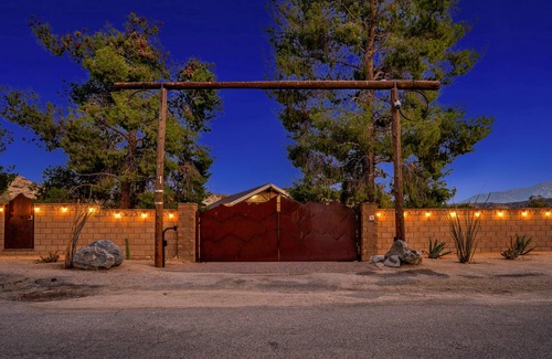 This stunning, rustic, custom 3700 sq. ft. 4+ bedroom home offers the perfect blend of relaxation and adventure. Nestled in the serene hills of Morongo Valley, just between Palm Springs and Joshua Tree, this expansive 3-acre property is the ideal desert retreat for monthly stays, whether you’re seeking rest, recreation or are looking for a space to entertain. Beautiful, custom gates and a surrounding block wall ensure privacy, yet the tiered space allows for amazing vistas. Whether you enjoy early morning sunrises or breathtaking sunsets, this is the place to view their majesty in comfort. The lack of light pollution provides for a crystal clear stargazing experience- the Milky Way is visible in the late night or early morning hours.