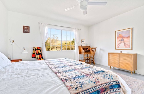 What was a cabin in the 1950s is now a large 3 bedroom / 2 bath retreat on a sprawling 10-acre slice of heaven. Perfectly located between Joshua Tree National Park and the eclectic Palm Springs, Rancho Pacifico is the perfect spot to recharge in the high desert. Just a quick drive away Pioneer Town, Pappy & Harriet's, Morongo Basin Reserve, Yucca Valley, & Integratron. Perfect for groups who want to explore the desert or relax away in isolation on the 60 foot front porch. Chill out in a perfectly situated hot tub under the stars with distant mountain views. Bring your pets!