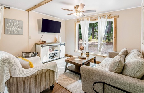 Get lost in the sounds of the wind through the trees and the flowing river from the comfort of the covered deck or patio here at Yakima River Retreat. As soon as you step through the front door, you will be greeted by this home's bright, welcoming, and modern touches. Grab a seat in the living room and curl up for a family movie night or play one of the available board games to let out your competitive side. Whipping up a home-cooked meal in the fully-equipped kitchen will be a breeze with modern appliances and everyone can dine inside at the breakfast bar with seating for five, or the dining table for four guests. When the sun begins to dip below the treetops, head outside and fire up the gas grill to enjoy al-fresco dining on the covered deck. Or, spend peaceful evenings on the spacious patio featuring a stone, outdoor fireplace, and incredible river views. Get out of the city and get closer to nature, fishing, mountain biking, and hiking when you stay at this riverfront home!
