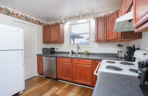 Nestled in a serene cul-de-sac just moments from Downtown, local colleges, the Coliseum, Aquatic Center, Koury Convention Center, and Cone Hospital, this thoughtfully curated bungalow offers the perfect blend of convenience and tranquility. Originally built in 1947, the home has been meticulously revitalized to ensure a comfortable stay, featuring plush bedding, a Keurig coffee maker, a washer/dryer, a fully equipped kitchen, high-speed internet, and parking for up to three cars. Long-term stays are welcome, with special discounts available for monthly bookings!
