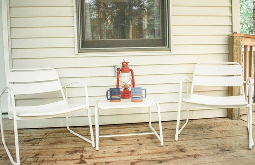 The cabin was completely redone in a camp theme, making for a nostalgic vibe with unique furnishings throughout.