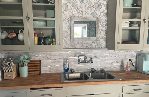 The home features hand-painted artwork and a cute, cozy style throughout. Every room has been designed with comfort and creativity in mind.